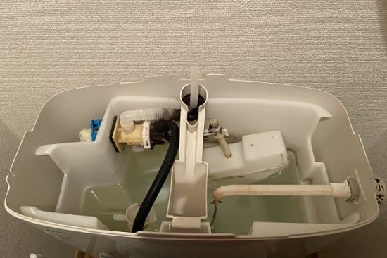 水が流れ続ける場合は、タンク内部の浮き玉やゴムフロートが正常に動いているか確認します。軽く触れるだけで改善することもあります。 -